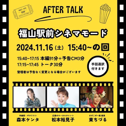 ■福山駅前シネマモード 東ちづる、森本ケンタ、松本裕見子