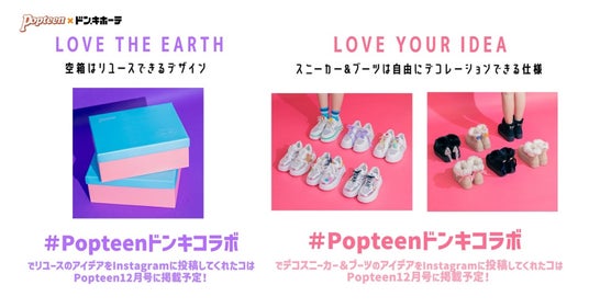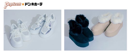 ティーン向けファッションマガジン『Popteen』とドン・キホーテのコラボシューズ(スニーカー&2wayブーツ各2色)が、全国280店舗のドン・キホーテで発売されます。