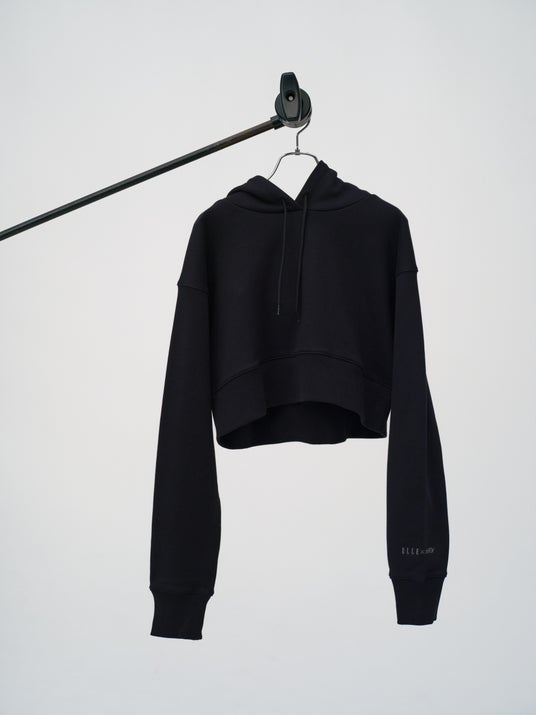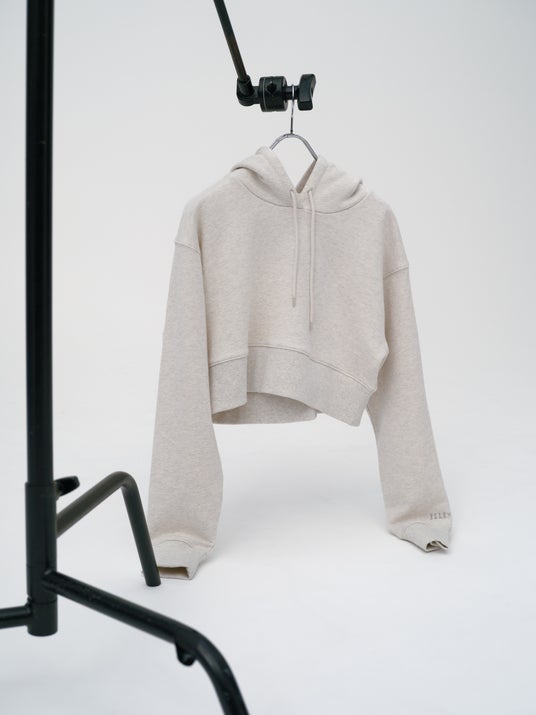 クロップド丈がスタイリッシュな印象のフーディープルオーバー。