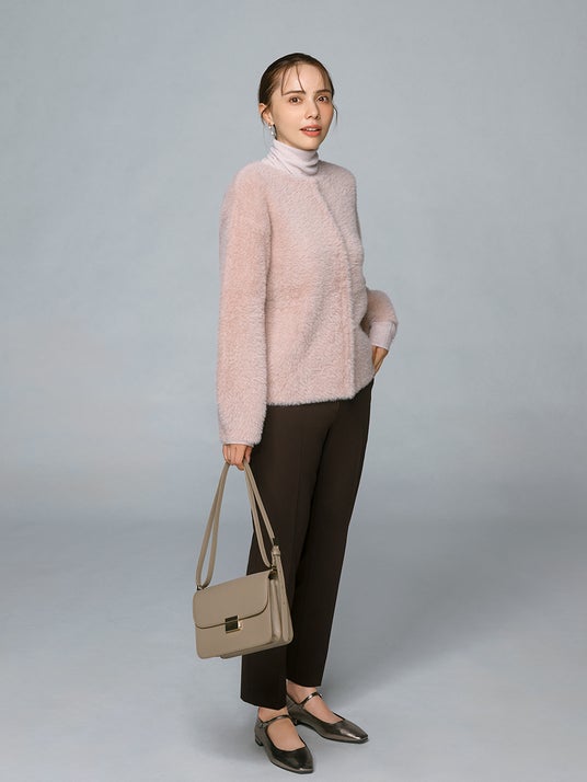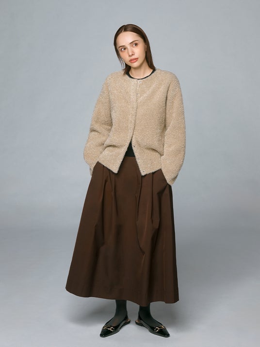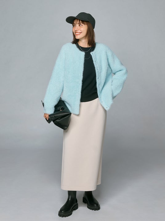 ○高級感あるミンク調の毛並みが優雅で、ニットアウターとしても活躍するカーディガン