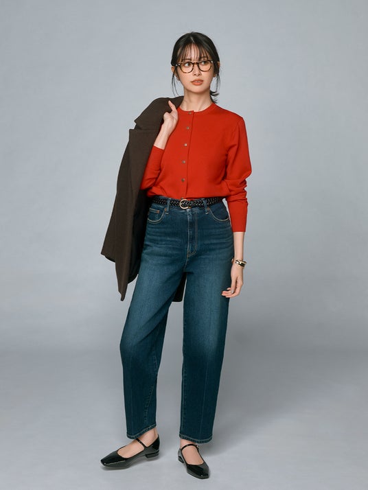 シーンを問わず活躍するハイゲージのカーディガンはこの冬持っておきたいアイテム。「エクストラファインメリノウールブレンドメタルボタンカーディガン」は柔らかなエクストラファインメリノウールならではの肌触りのよさが特長です。裏側にポリエステルをプレーティングすることで、ほどよく肉厚で洗濯後に型崩れしにくい生地を実現。今季はよりハリのある素材に仕上げ、上質感がアップしました。光沢感のある生地とゴールドのメタルボタンが上品かつモダンな雰囲気を演出します。