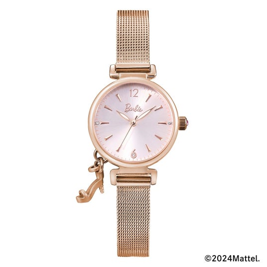 シンプルなデザイン文字盤にコラボレーションと一目でわかる『Barbie』ロゴを中央にあしらいました。