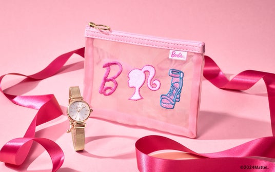 スマートウォッチに引き続き第二弾となる本コラボレーションでは、バービーコラボレーションウォッチ限定の刺繍入りオリジナルメッシュポーチをプレゼントいたします。