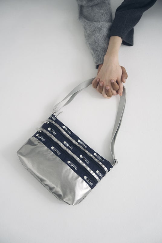 LeSportsacのアイコンでもあるブランドロゴのテープをシックなネイビーで統一し、ADAM ET ROPE’らしいモードなシルバー、ブラック2色展開で制作したコラボレーションアイテムは、11月1日(金)よりJ’aDoRe JUN ONLINEにて予約受付を開始。11月26日(火)よりADAM ET ROPE’全店舗、J’aDoRe JUN ONLINEにて発売いたします。