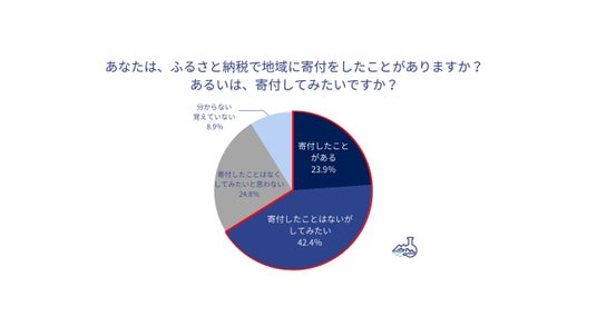 – ふるさと納税での寄付経験や寄付意向を尋ねると「寄付したことがある」が23.9%、「寄付してみたい」が42.4%。出身地ではなくとも愛着を感じる「第2のふるさと」に関心がある人(「第2のふるさとがある」「いつかはほしい」の計)は65.3%。「第2のふるさと」があり「ふるさと納税経験がある」人において、第2のふるさととの出会いは「ふるさと納税がきっかけ」という人が72.3%。東京圏出身の若者に絞ると、79.8%にのぼった。
