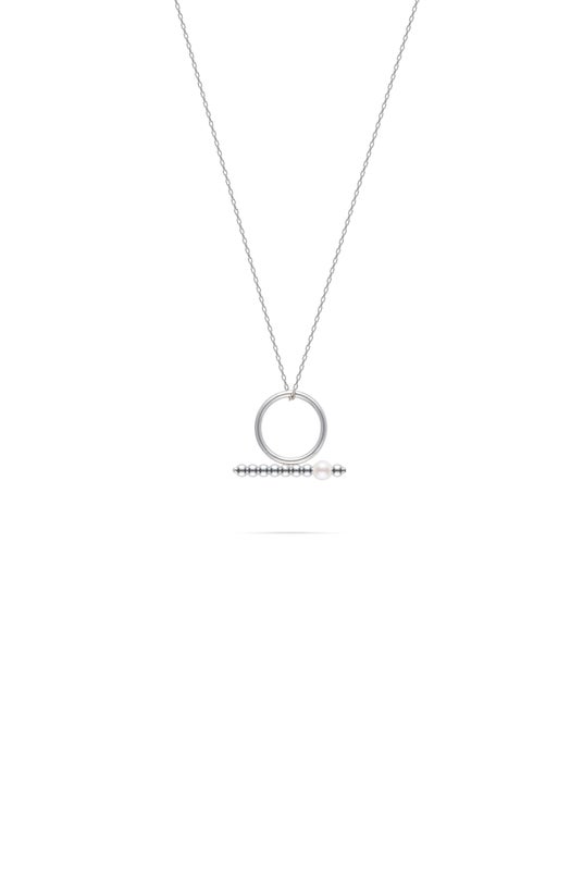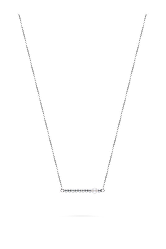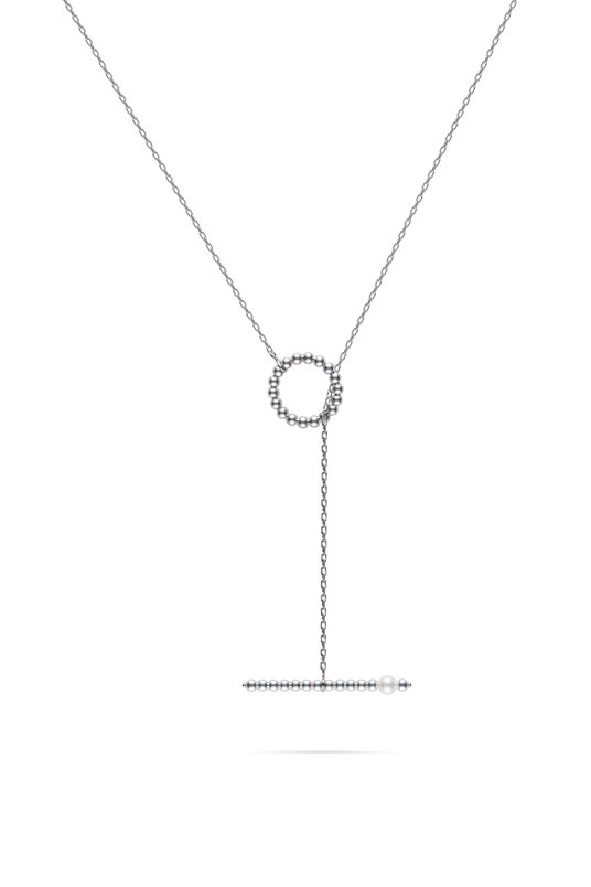 ネックレスはタイプの違う3つのアイテムからセレクト可能で、どれも純プラチナが放つ無垢な輝きを生かした、スタイリッシュなデザインです。サークルとストレートラインのバーを組み合わせた幾何学的なデザインのネックレス(最長45cm)は、新作のリングとのペア使いがおすすめです。純プラチナのボールの端にあしらったベビーパールが上品で清楚なイメージをつくっています。シンプルなストレートラインのデザインのネックレス(最長45cm)は、新作ピアスとのセット使いがデイリーユースにぴったりです。全長約60cmのロングネックレスは、サークルの中にストレートラインのバーをくぐらせるデザインで、自由にネックレスサイズを変えることができます。シンプルなデザインのネックレスとの重ね着けもお勧めです。