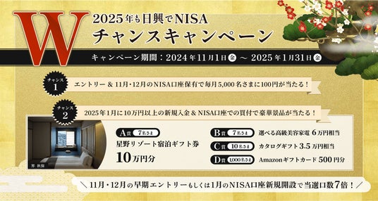 SMBC日興証券株式会社は、11月1日(金)より「<2025年も日興でNISA>Wチャンスキャンペーン」を実施いたします。