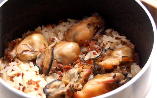 坂町で水揚げされた牡蠣を使用、カツオ、イリコ、サバを瞬間高温高圧成法で粉末にし出汁をつくり、さらに江田島で採れた牡蠣を粉末にしたものを出汁に入れ牡蠣の濃厚な旨味が楽しめます。