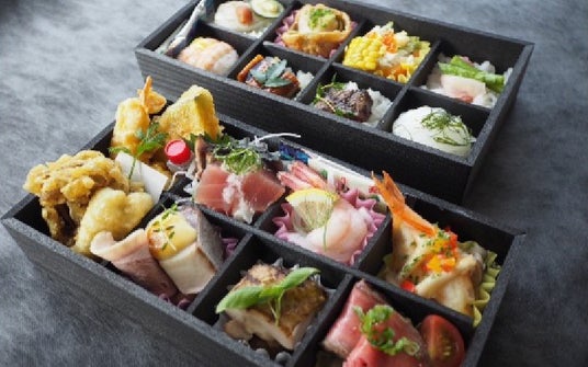 地域食材を使い数々の料理を生み出してきた「アヴェニールタウン」の水橋聴シェフが手掛ける創作弁当。比婆牛ローストビーフ、鮎のグリル、総領こんにゃくと高野大根の煮物等、旬の味を一つの弁当にまとめました。