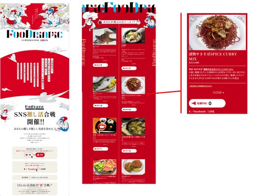 「FooDrinpic 広島紅白“食”合戦!」に向け、「SNS推し活合戦」での応援投票の数やシェアの数などを計測し、食のテーマ性や地域特性なども総合考慮して、出場する推しメニュー・テーマを決定します。