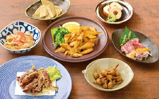ねぶと / ちいちいいか / くわい /ガス天 / 鯛ちくわを使ったおつまみの総称です。手のひらサイズの食材が、煮たり揚げたり、パッと調理すると、ハマるおつまみに大変身!日々のお酒のおともに、幸せを感じませんか?