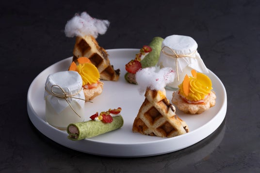 またセイボリー5種では、旬の国産いちごと鴨を使ったオープンカナッペ「国産いちごと鴨肉のコンフィ」や、聖護院かぶの旨みを活かしたほっとする味わいの「聖護院かぶのポタージュ」など、日本・京都の食材を使った繊細な味わいをお届けします。