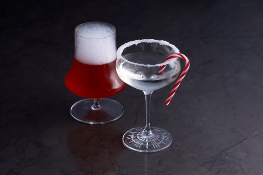 左)モクテル「フェスティブベリーニ」 右)ウェルカムドリンク「ウィンタースパークル」