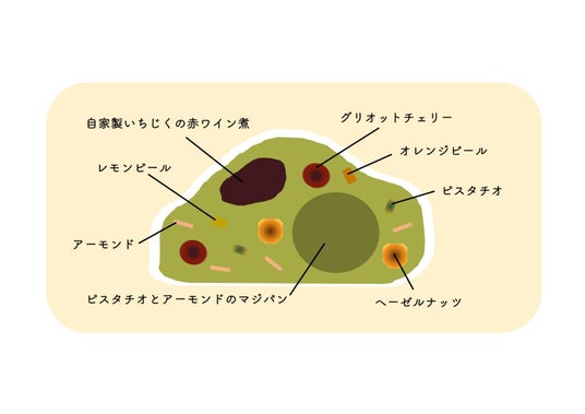 ピスタチオと相性の良いグリオットチェリーやいちじくをアクセントにして、しっとりとリッチに仕上げました。