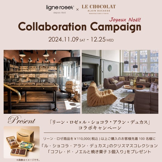 本キャンペーンでは、期間中にリーン・ロゼ商品を¥110,000(税込)以上ご購入のお客様を対象に「ル・ショコラ・アラン・デュカス」のクリスマスコレクション「コフレ・ド・ノエルと焼き菓子3個入り」を先着100名様にプレゼントいたします。