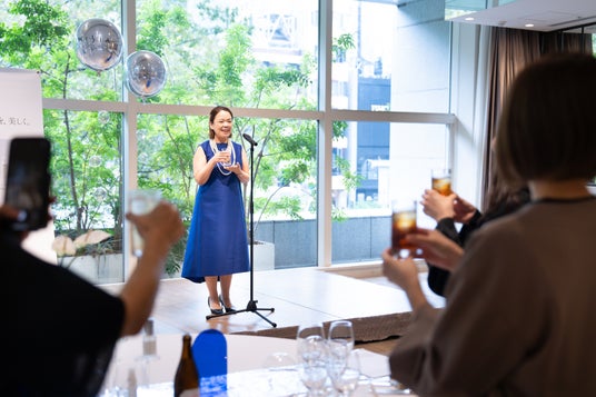 オープニングムービーの上映に続き、代表取締役の中山ゆかりが登壇し、参加者への感謝を込めた挨拶と乾杯の音頭で会場が一体感に包まれました。
