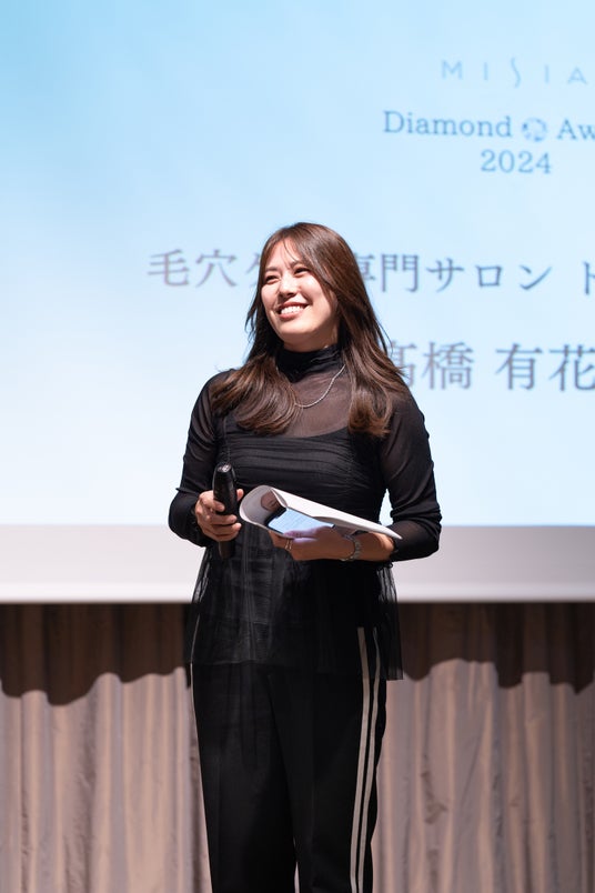 「MISIA Diamond Award 2024」表彰式では、全国から集まったMISIA式施術者の中から、顧客に大きな変化をもたらした6名が選ばれ、代表取締役・中山ゆかりによって表彰されました。