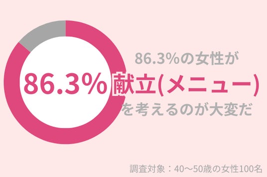 調査の結果、40代女性のうち、86.3%と大部分の方が「献立(メニュー)を考えるのは大変だ」と思っていることがわかりました。献立(メニュー)を考えるのが大変な場合は、以下のような工夫をしてみるのはいかがでしょうか。