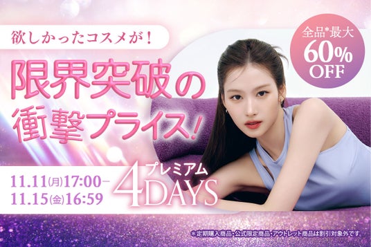 株式会社ミシャジャパン(本社:東京都港区)が運営するミシャジャパン公式オンラインショップ本店(https://www.misshajp.com)にて最大60%OFFのプレミアムなセールを11月11日(月)17:00から11月15日(金)16:59までの期間に実施します。