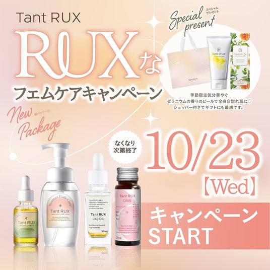 今秋、定番人気商品の「オイル」「ソープ」のパッケージをリニューアル。これを記念して10月23日より「RUXなフェムケアキャンペーン」を展開中です。
