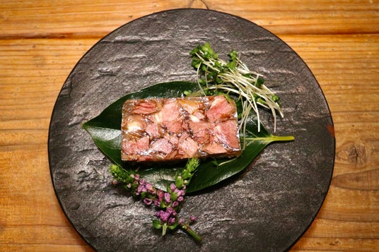 【みかん猪のテリーヌ】 昆布とカツオの和出汁で仕上げたテリーヌ。丁寧に臭みと脂を抜き、さっぱりとした味わいに。