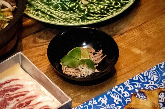 – コースの目玉である「牡丹鍋」は、みかん猪と里芋、鴨つくね、4種の茸など、旬のジビエと山の食材を贅沢に使用。