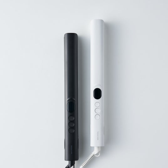 アイロンの要となるプレート面には粒子が細かい「ナノセラミック」を配合したコーティングを施し、ひっかかりのないスムーズな髪すべりを提供します。また細かな毛束にもしっかりと密着する3D「ぴたっと」プレートを搭載し、毛先まで捉えてひとすべりで美しいストレートを実現します。温度は、髪質や希望のスタイリングに合わせて120℃から200℃の5段階に設定でき、温度が一目でわかるデジタル表示を採用しました。スリムで持ちやすい形状とマットなカラーリングは、トレンドにとらわれず長く使えるミニマルなデザインです。