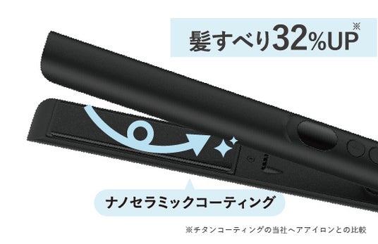 プレートには、粒子が細かい「ナノセラミック」を配合したコーティングですべりやすさが32%(※1)アップしました。摩擦ダメージに配慮した、ひっかかりのないスムーズな髪すべりを実現します。
