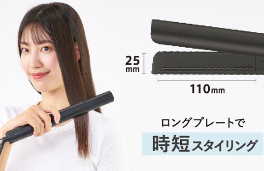 ボリュームのある毛束も一気に挟める、長さ110mmのロングプレートを採用し、忙しい朝もすばやくスタイリングが可能です。ロングヘアの方や毛量の多い方にもおすすめです。