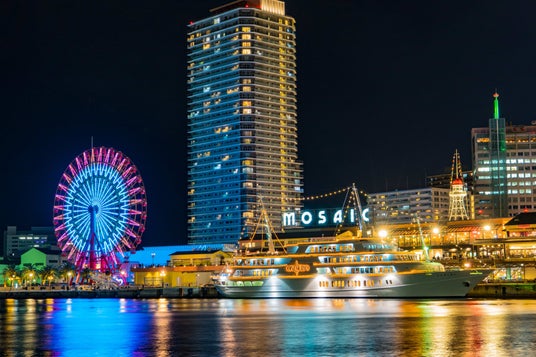 モザイクの大観覧車と神戸港の夜景は、海から見ると格別。