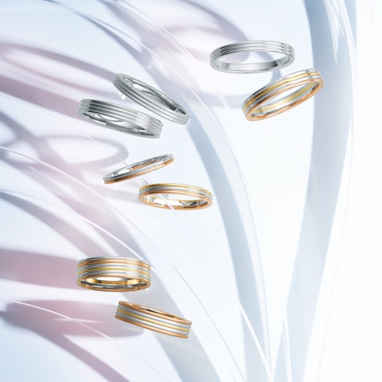 地金素材や仕上げなどを組み合わせ、自分らしくカスタマイズできる新しいスタイルのブライダルリング〈パーソナライズド リング〉から、大樹にきざまれた年輪のように、時を経て幾重にも重ねていくふたりだけの物語をイメージしたシリーズ〈Cerne/セルン〉が登場。
