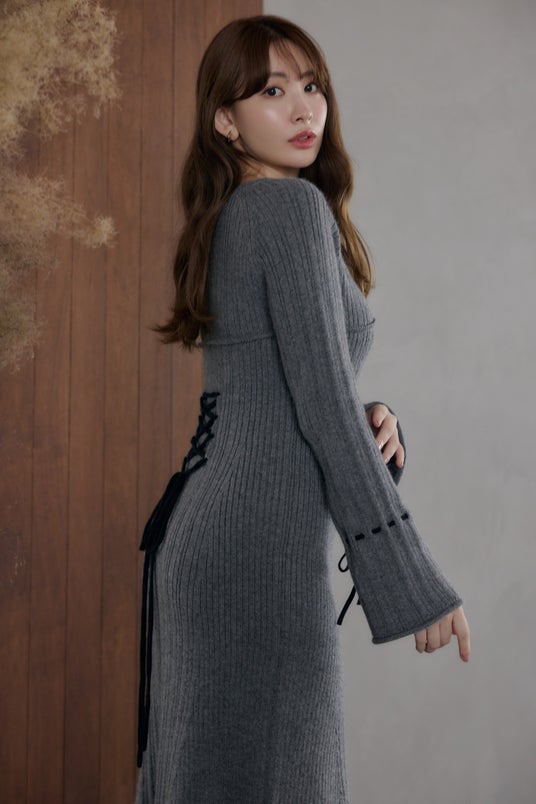 Back Lace-Up Knit Dress ¥25,000 tax in