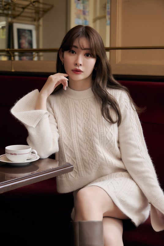 Wool-Blend Cable Knit Set ¥26,000 tax in
