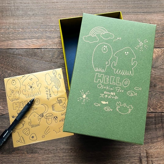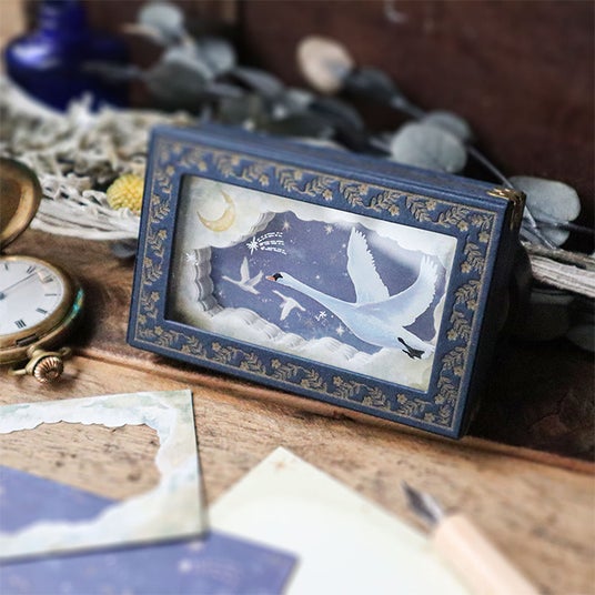 紙を重ねて 3 層、4 層の絵柄を組み合わせることで、奥行き感を演出したデザインボックス。