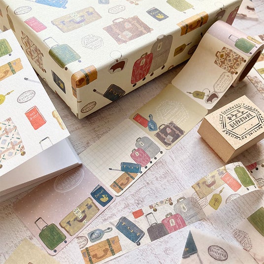 旅の記録やお手紙に使っていただけそうなトランク柄アイテムの詰め合わせです。
