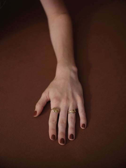 地金の優しいカラーと、落ち着いたブラウンダイヤが溶け合うプチコレクション。