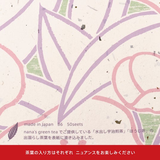 表紙をよく見てみると、紙の中に日本茶の茶葉が見え隠れ。