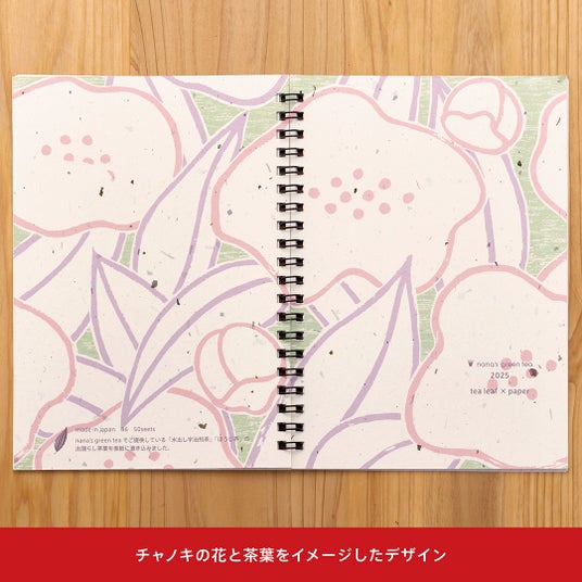 日本茶をご提供したあとの出涸らし茶葉を利用し、ノートの表紙に漉き込みました。