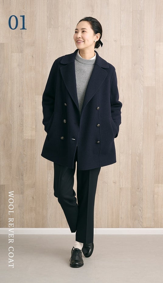 “どんな服にもマッチするダブルブレストコート。フロントがクラシカルな印象ながら、キレイ目コーディネートにもデイリーカジュアルにも活躍するアイテムです。ソフトな風合いで軽くて暖かく、しなやかで着心地も抜群です。”
