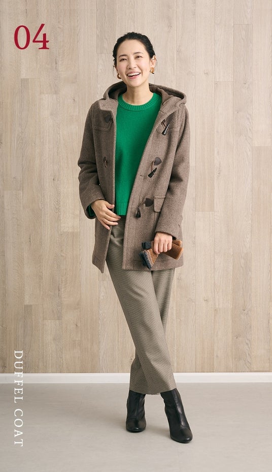 “トラッドの冬のアウターとして定番のダッフルコートは飽きのこないベーシックなデザインで大人女性のカジュアルスタイルにおすすめです。