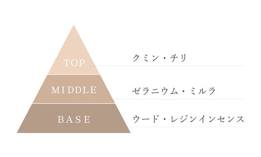 「ジャルダン オリエント」は、オリエンタルガーデンをイメージしたエキゾチックで忘れがたい香りです。クミンやチリスパイスが鮮烈に香り立つ中、ゼラニウムとミルラの官能的な甘さが絡み合い、ウードの深い余韻がまるで夜に溶け込むように漂います。心に温もりと深みを刻み、忘れられない夢のような後味を残します。