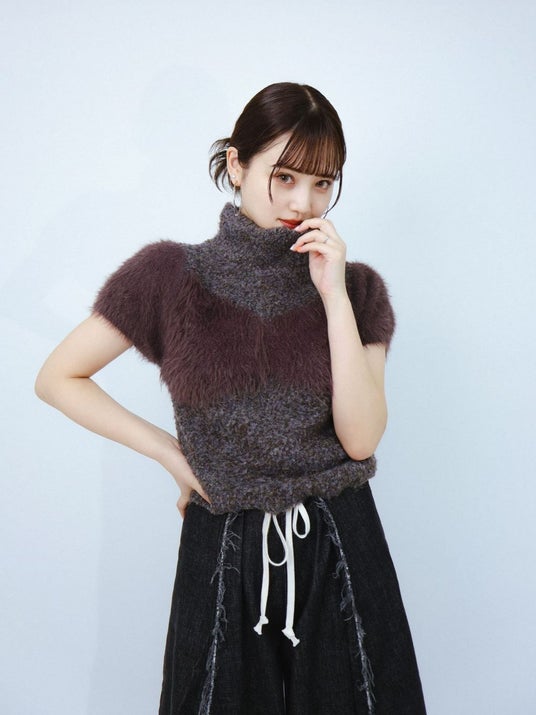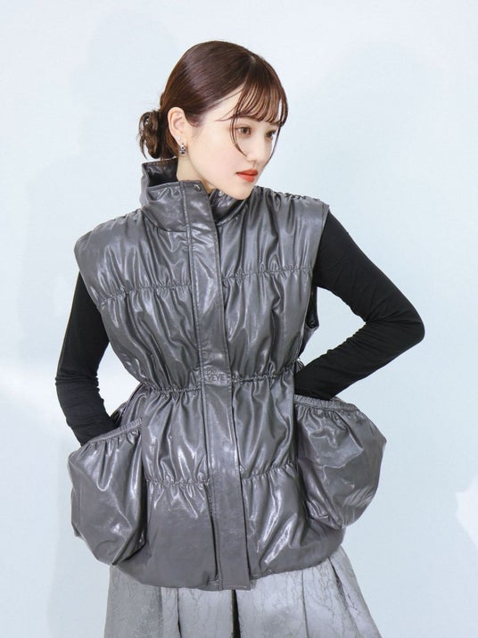 ダウンベストとシャギーニットトップスを公式サイトにて販売中。