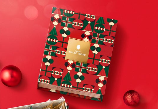ブックスタイルのボックスには、クリスマスカラーを基調にクリスマスらしいモチーフをアイコニックに描きました。食べたあとは、小物ケースとしても使いたくなるすぐれもの!おしゃれに見せ置きできちゃいます。食べても飾っても、とにかくウキウキした気持ちにさせてくれる『チューリップローズ クリスマスガーデン』で、年に一度のクリスマスを思う存分楽しんで下さいね。