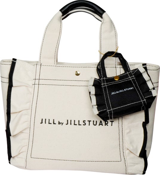 JILL by JILL STUARTで大人気のフリルトートバッグをもとに監修、制作した本アイテムは立体的なフリルディテールにパイピングをきかせたキュートなデザイン。実際のアイテムはスクエア型の小ぶりなシルエットながら、マチがしっかりあり普段使いにおススメ。品の良さと実用性も兼ね備えています。