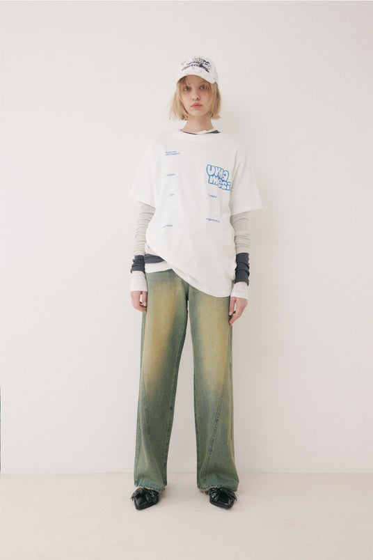部分的に刺繍や発泡プリントなど様々な技法でアートを乗せたこだわりの一枚。