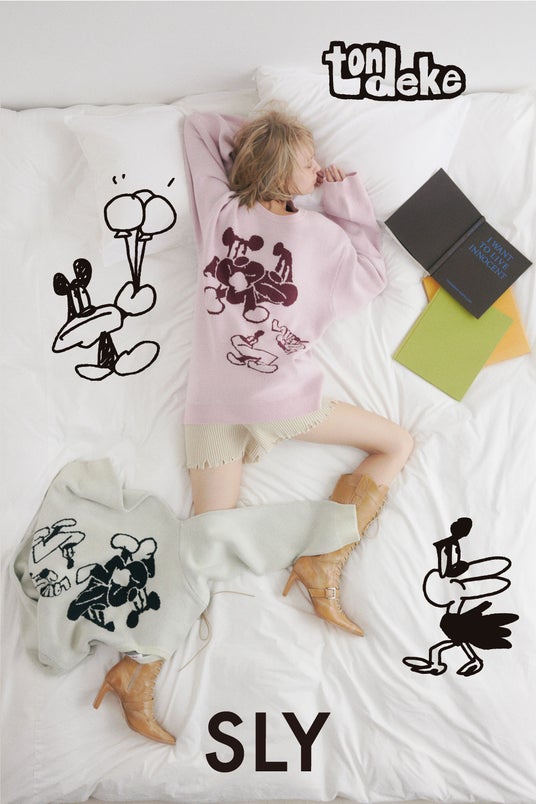 本コラボレーション用に描き起こしたアートをジャガードで表現したニットトップス。