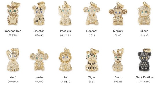 12種類の動物をそれぞれモチーフにしたチャーム。