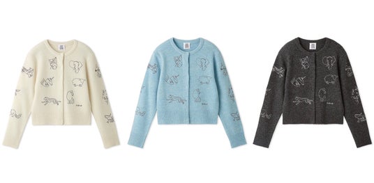 手描き風のアニマル刺繍を全面にあしらったニットカーディガンの2型が登場。