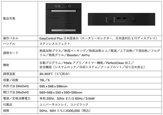ミーレ・ジャパン株式会社(本社 : 東京都目黒区、代表取締役社長 : 冨田 晶子)は、2024年12月5日(木)より、新製品のビルトインオーブン「H 2465 B」を発売します。
