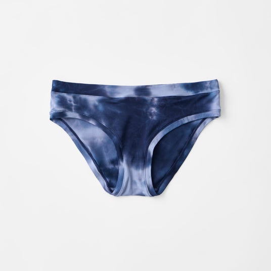 さらに、Silktouch 生地に初めて絞り染めを施した「ネイビー タイダイ」は、染めの段階が手作業のため、柄の出方が一点一点違う、オンリーワンの存在。